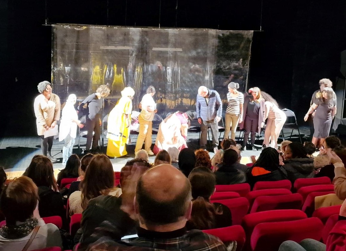 Le vendredi 27 janvier 2023, les résidentes du CHRS qui avaient participé à l’Atelier proposé par la Ferme de Bel Ébat sont montées sur la scène du Théâtre de la Ville de Guyancourt.